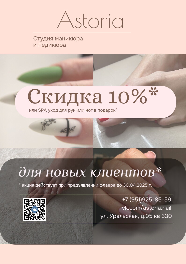 Ухоженный внешний вид, восхищенные взгляды, хорошее настроение - разве не каждый стремится к этим прекрасным вещам? Все они доступны для вас с студией красоты Astoria! Наши визажисты и мастера по маникюру знают, какой силой обладает красота, и добавят вашему облику новой гармонии.